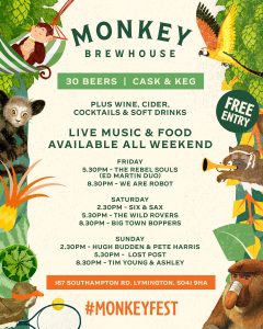Instagram @monkeybrewhouselymington | Facebook @MonkeyBrewhouse